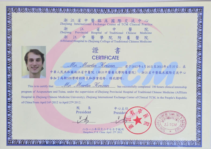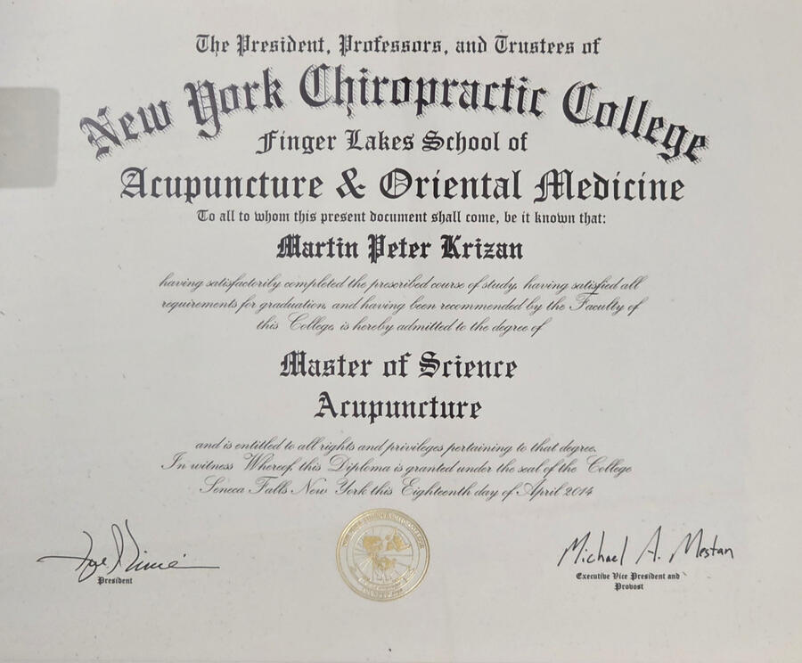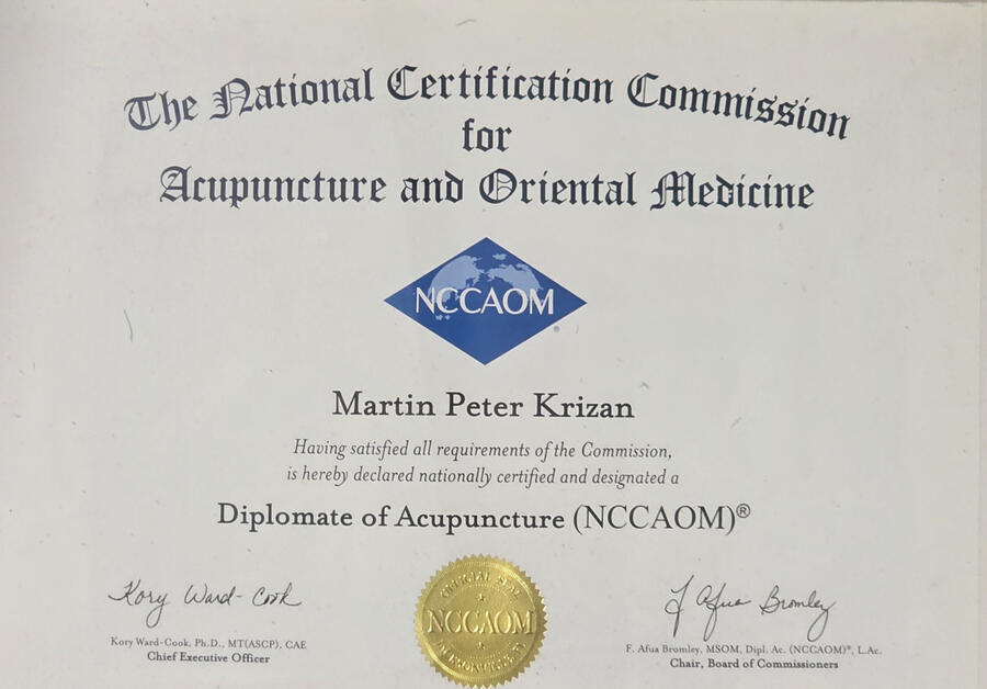 Martin Križan vystudoval čtyřletý program akupunktury na Northeast College of Health Sciences v USA, kde získal magisterský titul a absolvoval více než 2000 hodin klinické praxe s pacienty. Během studia měl také možnost studovat tradiční čínskou medicínu v renomované nemocnici TCM v čínském městě Hangzhou spolu se svými americkými spolužáky.Po dokončení studia získal národní certifikaci akupunkturisty v USA a licenci k praxi ve státě Florida. Od té doby se akupunktuře věnuje již více než deset let.Kromě toho je také zkušeným praktikantem Qi Gongu, který studoval u svého sifu v rámci stylu Hung Gar.